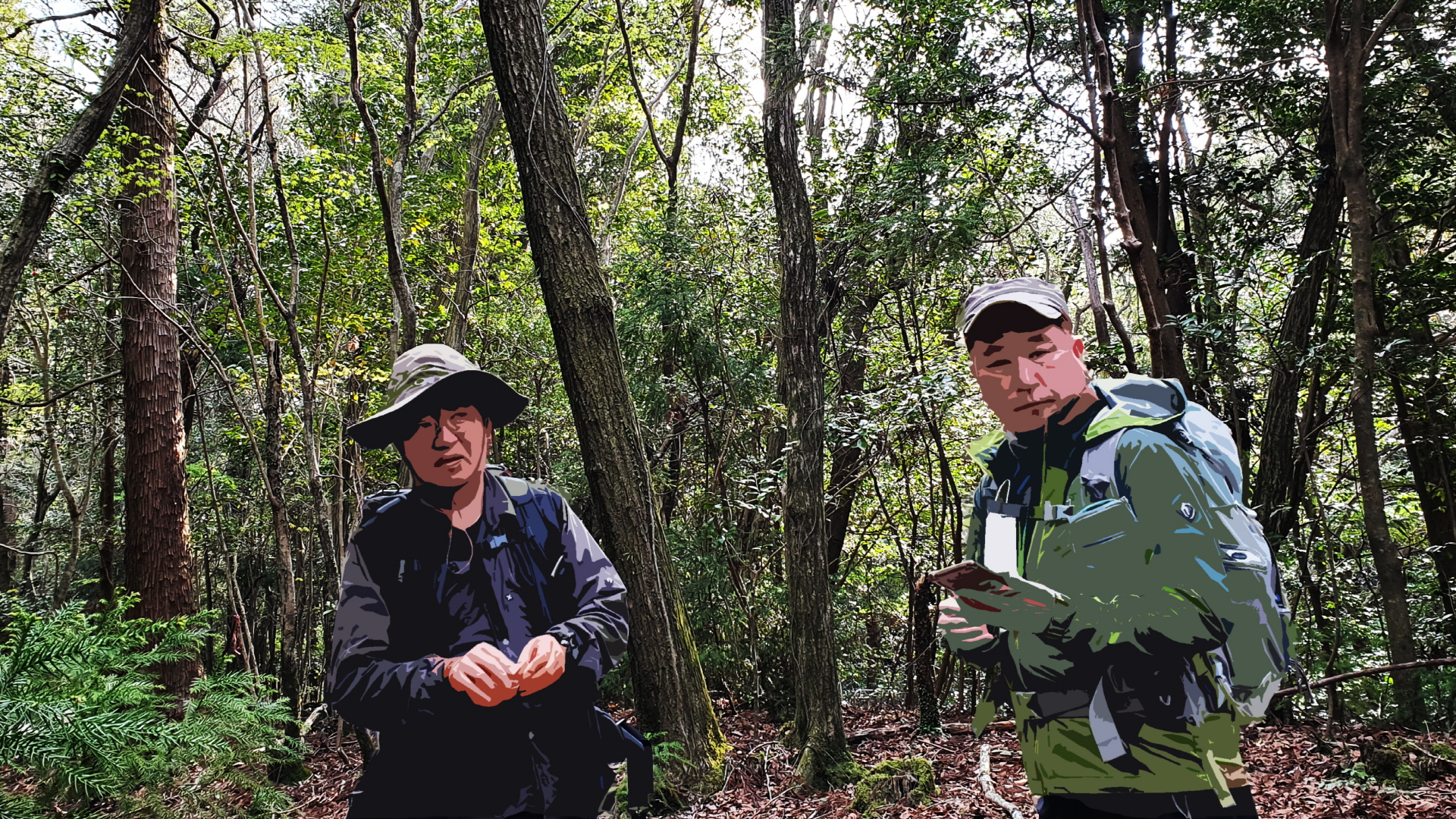 이승이오름에서 출발하여 GPS트레일을 따라 1시간 정도 지나 정상인 듯 한 곳에 도착했는데, 급경사를 힘들게 올라갔는데, 반대쪽으로 보이는 차량들……. 516도로가 바로 코앞에 있었네요.