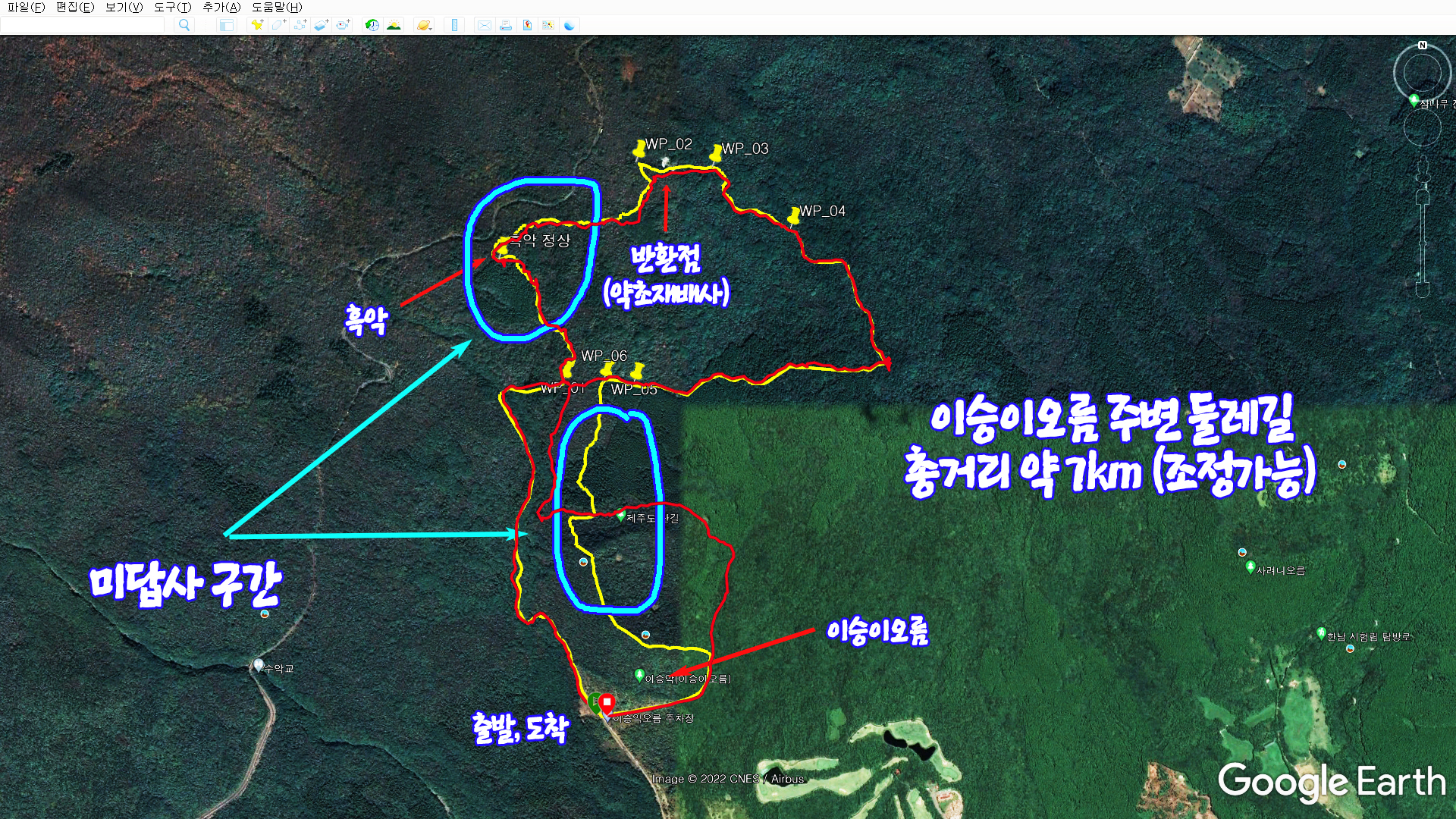 사전에 WP(Way Point)를 표시해 놓으니 길찾기가 많이 쉬워졌습니다.
