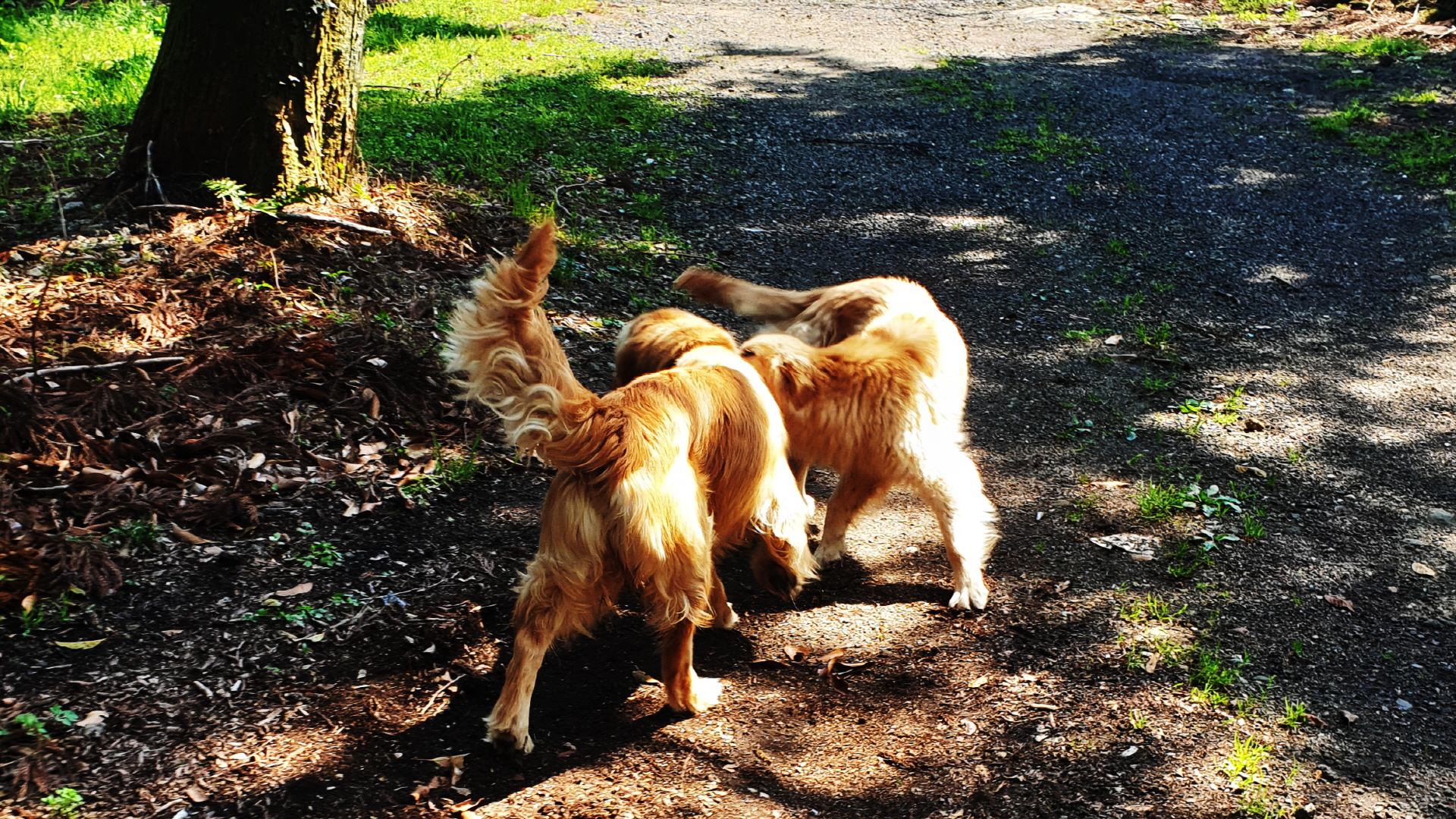 반환점인 약초재배사(?), 계속 따라오는 리트리버 가족들