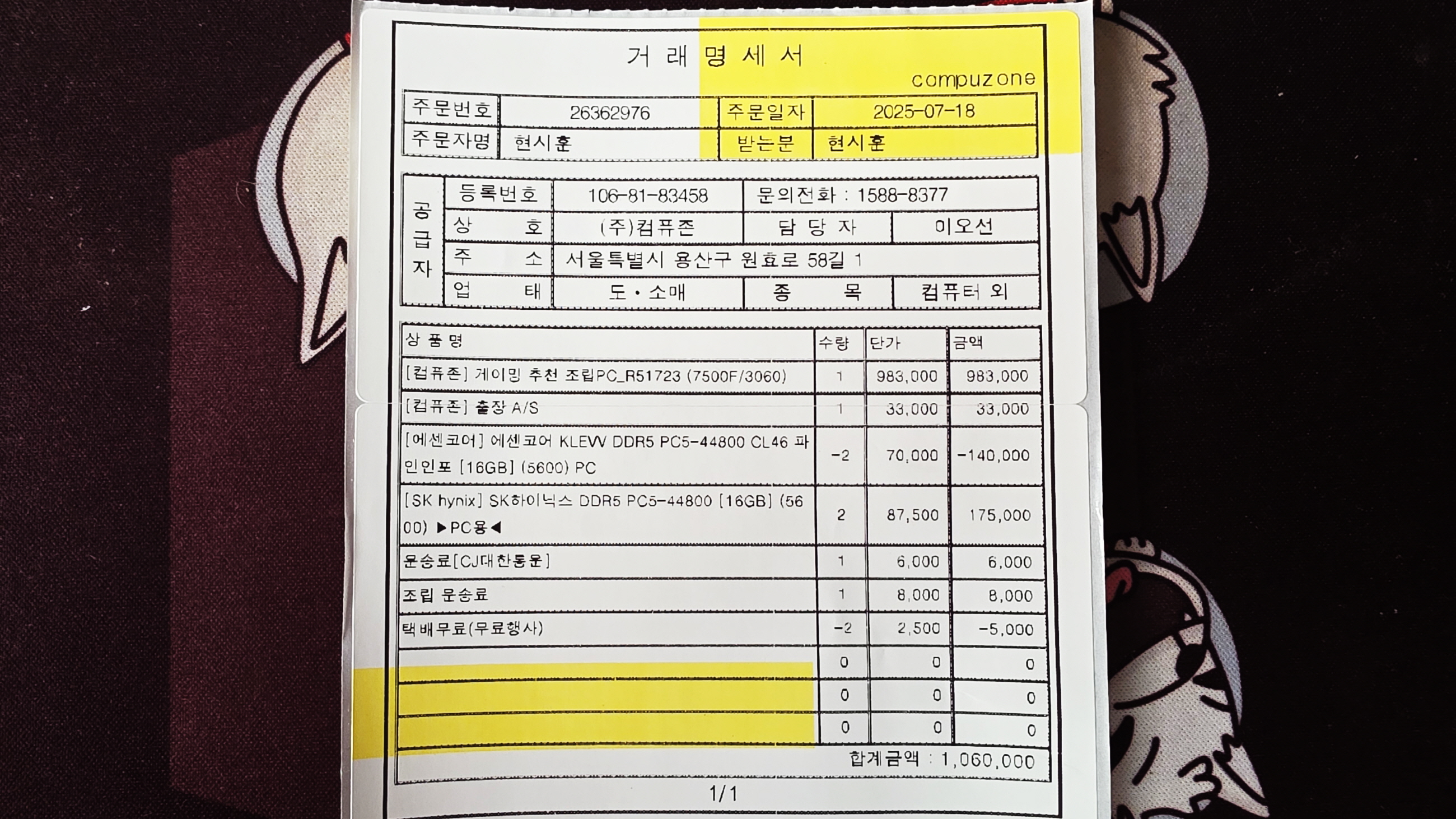 결론은 메인보드 불량인지 100% 확신도 아닌데다가 어렵게 메인보드를 구입한다고 해도 앞으로 얼마나 더 쓸 수 있는지도 몰라서 이 참에 새로 구입하가로 결정했습니다. 지금까지 3~4년에 한 번씩 컴퓨터를 교체하면서 자작으로 조립해서 사용해왔고 주변 지인들의 컴퓨터도 조립하며 자칭 타칭 “컴도사”라는 말을 들으며 지내왔는데, 컴퓨터 부품의 성능이 점점 좋아지고 수명도 늘어나면서 컴 조립의 기회는 뜸해졌고, 7년 전이 마지막 컴조립이라 다시 공부하기도 귀찮고 믿음가는 컴조립 업체도 많아지고 비용도 많이 저렴해져서 그동안 부품 구입 단골업체에 조립 완제품으로 구입했습니다.