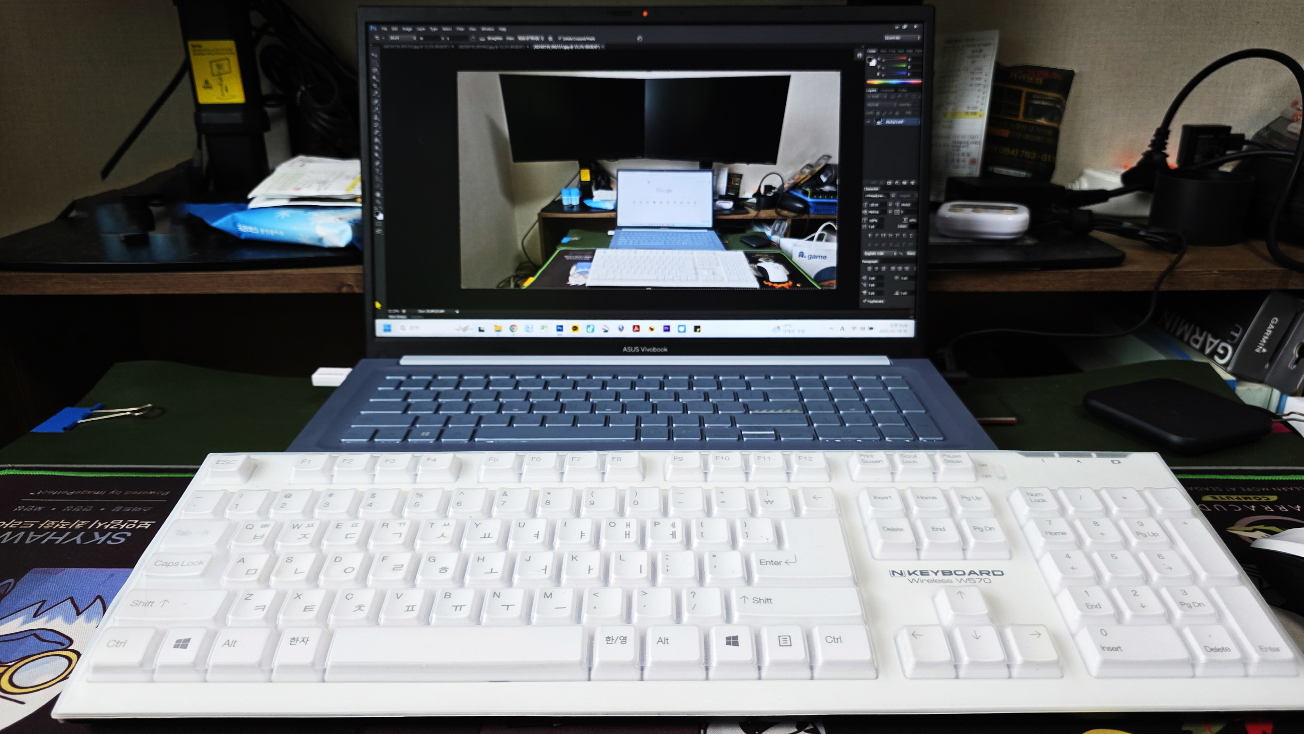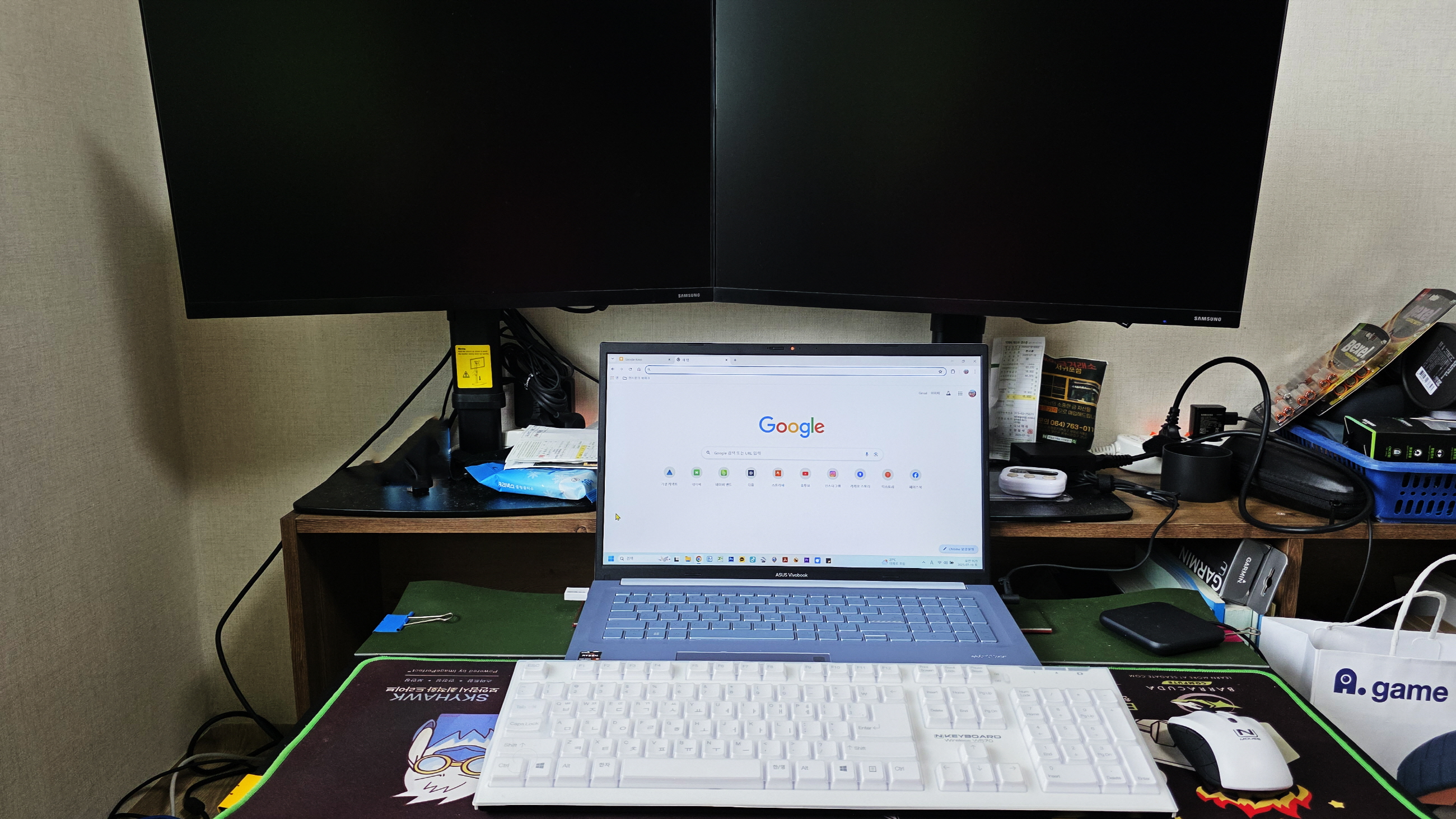새 컴퓨터가 도착 할 동안 사무실에서 쓰던 노트북으로 임시 사용하기로, 노트북에 HDMI포트가 있어서 듀얼 모니터로 사용~~