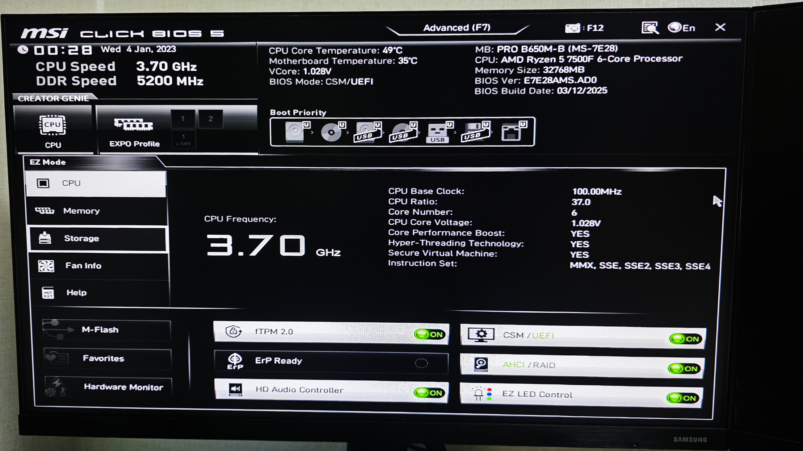 메인보드 : MSI의 PRO B650M-B (AMD B650/M-ATX), 기가바이트 제품만 썼었는데 이번엔 MSI로