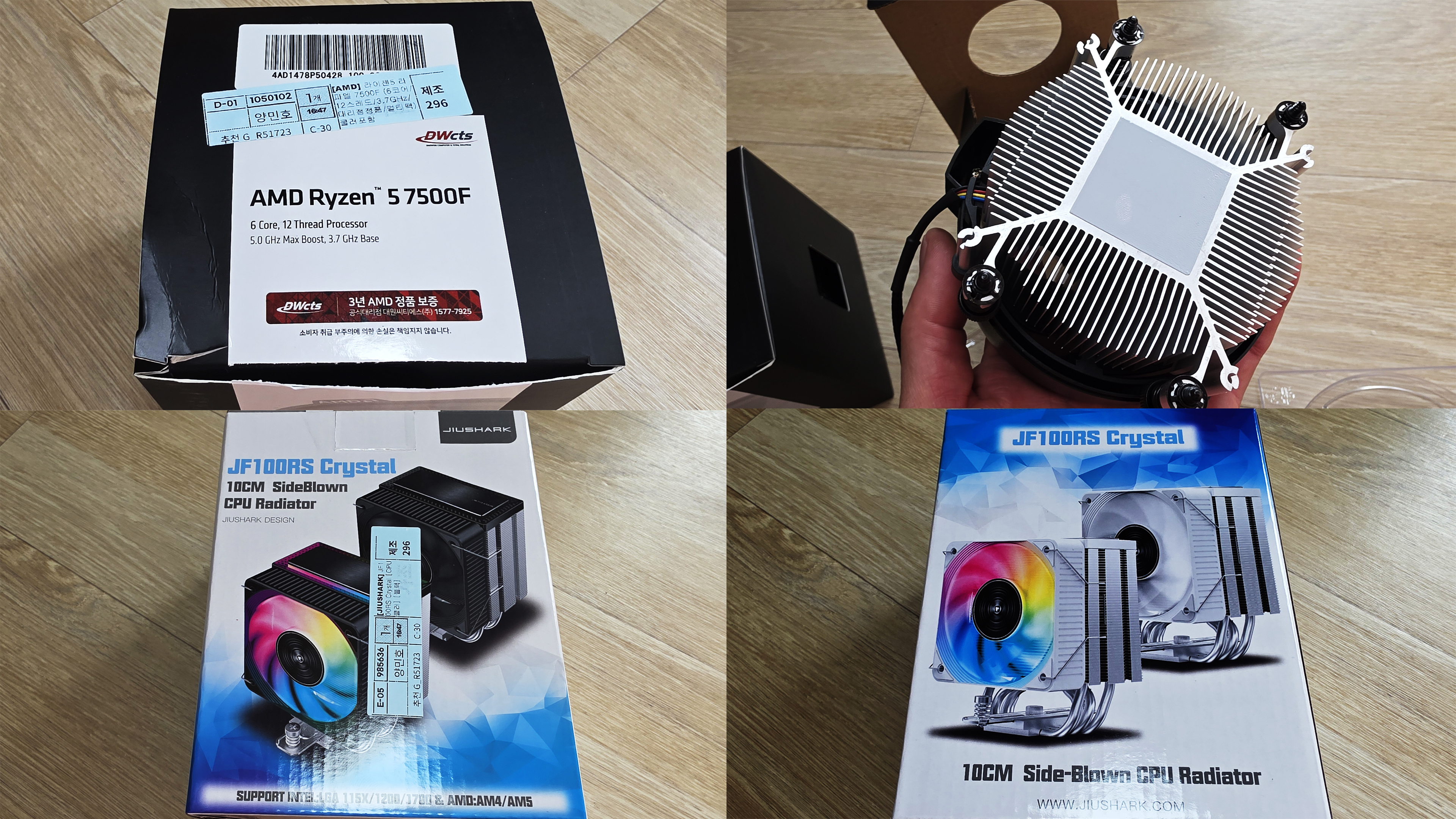 CPU : AMD 라이젠5 라파엘 7500F (6코어/12스레드/3.7GHz) 쿨러포함, 컴을 조립하기 시작한 이후로는 계속 AMD CPU만 계속 사용했어서 이번에도 고민없이 AMD로 선택