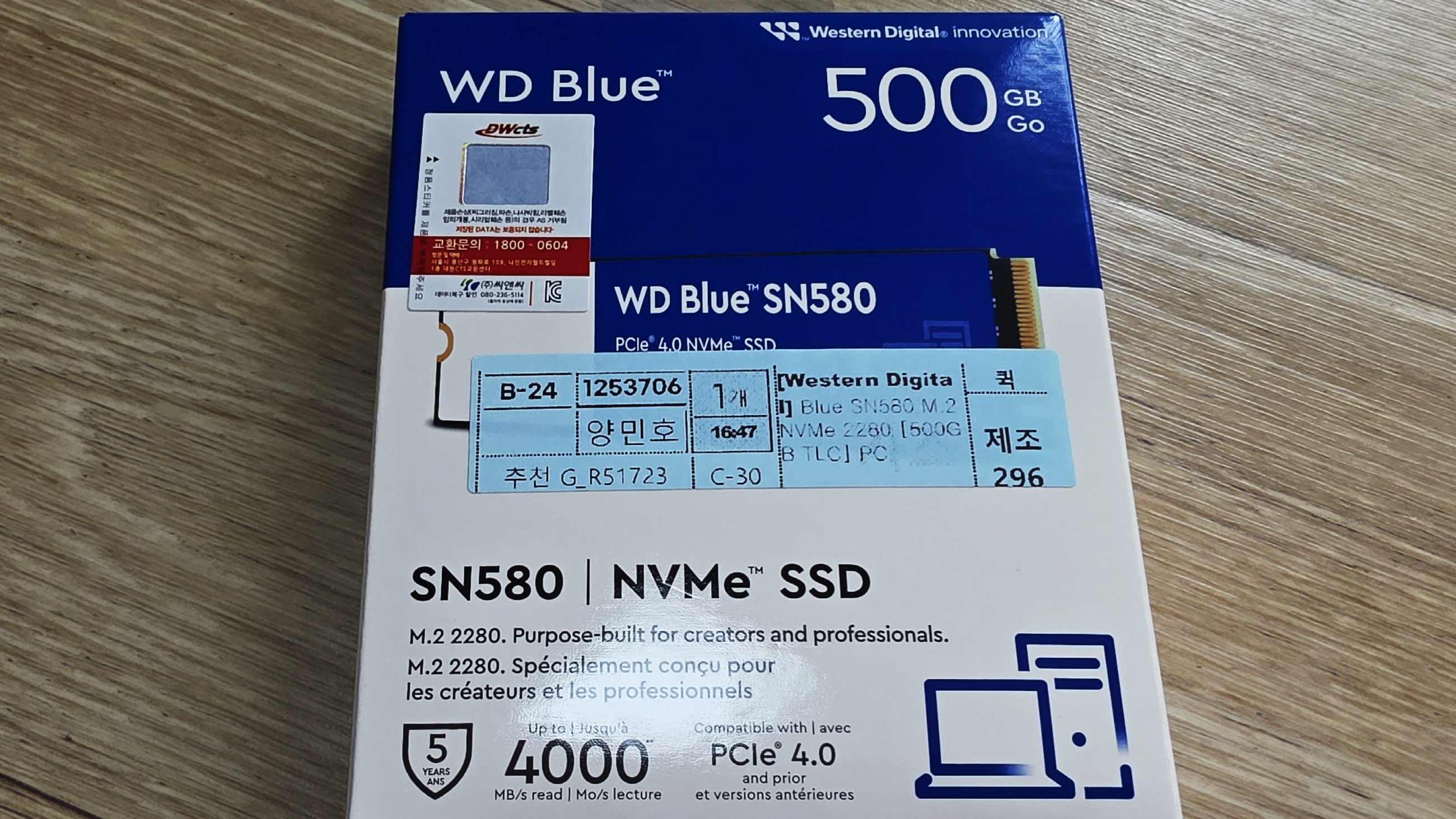 SSD : Western Digital의 Blue SN580 M.2 NVMe 2280 [500GB TLC], 그전에는 250GB를 썼는데 조금 모자라다는 생각에