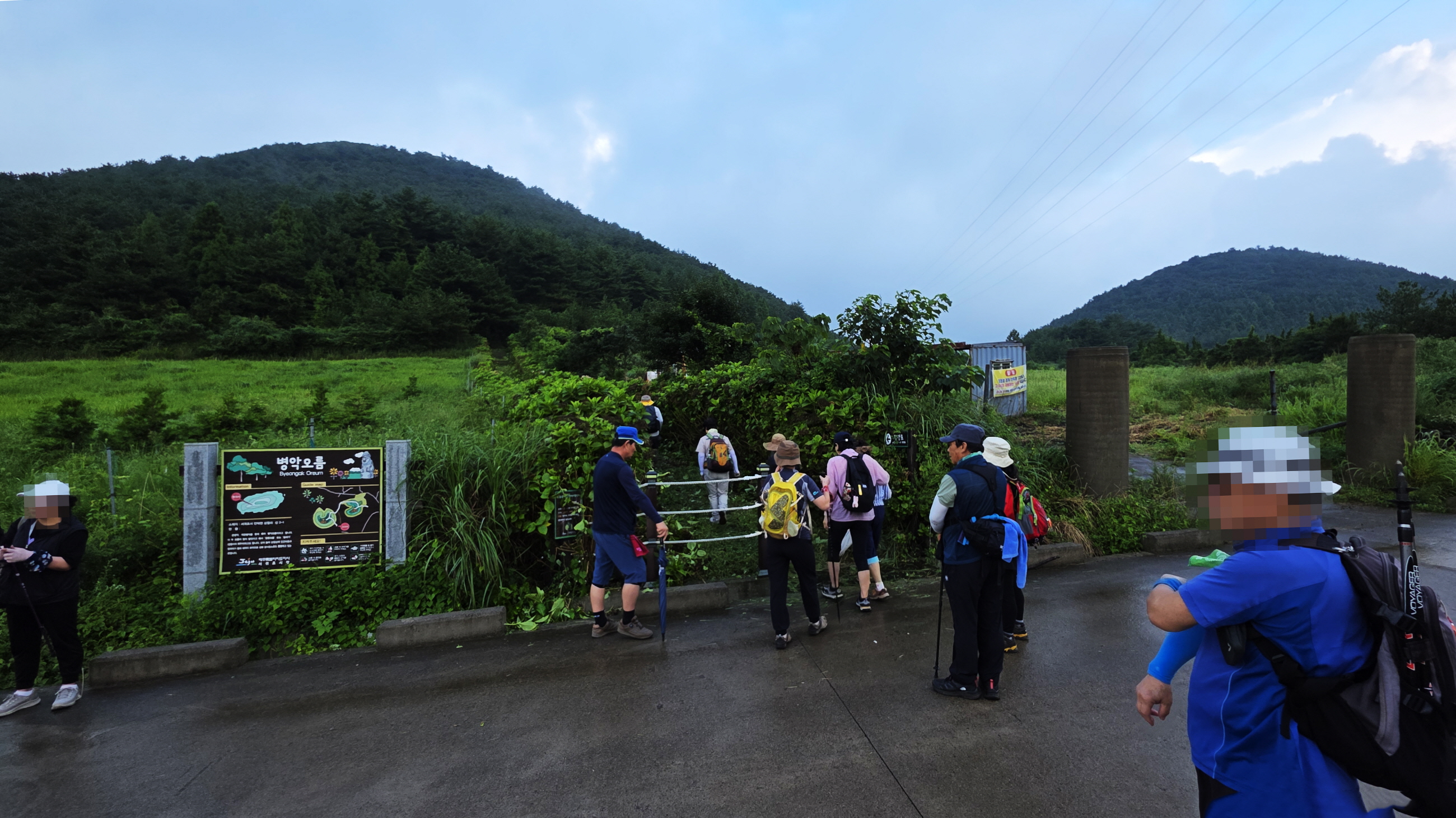 MG산남 초록산악동호회 9월 1주차 정기산행으로 대병악(1.6km/43m), 서광곶자왈(2km/28m) 코스를 걸었습니다. 당초 계획은 대 · 소병악을 걷기로 했는데 대병악 정상에서부터 내리기 시작한 소나기가 오랫동안 그치지 않아 등반로도 많이 미끄러워 어쩔수 없이 코스를 줄였습니다. 점심때까지 시간이 많이 남아 서광곶자왈을 걷기로 코스 급 변경